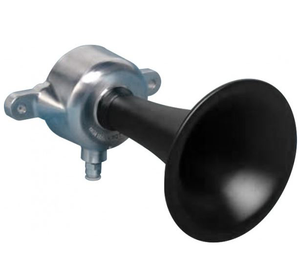 A very robust Air horn for the maritime, industrial or railway acoustic signalling purposes. Suitable for all kinds of (seagoing) vessels like workboats and ferries. A stainless steel membrane housing with brass horn.